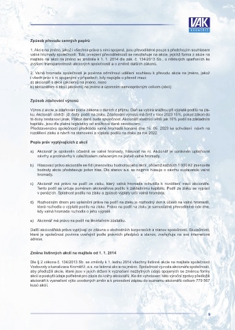 valné hromady společnosti. Toto omezení převoditelnosti se nevztahuje na akcie, jejichž forma z akcie na
