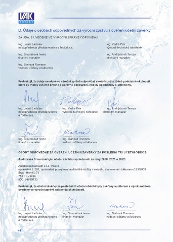 D. Údaje o osobách odpovědných za výroční zprávu a ověření účetní závěrky