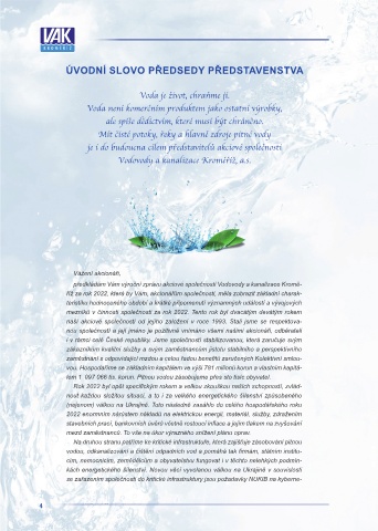 předkládám Vám výroční zprávu akciové společnosti Vodovody a kanalizace Kromě-