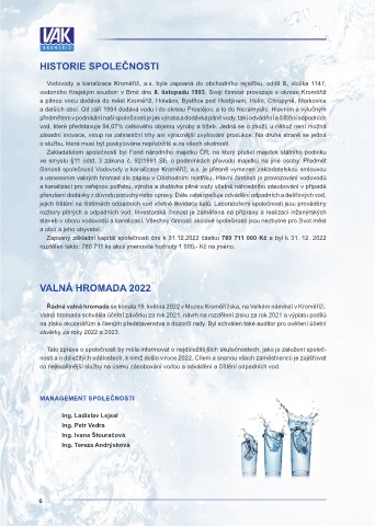 činnosti společnosti Vodovody a kanalizace Kroměříž, a.s. je přesně vymezen zakladatelskou smlouvou